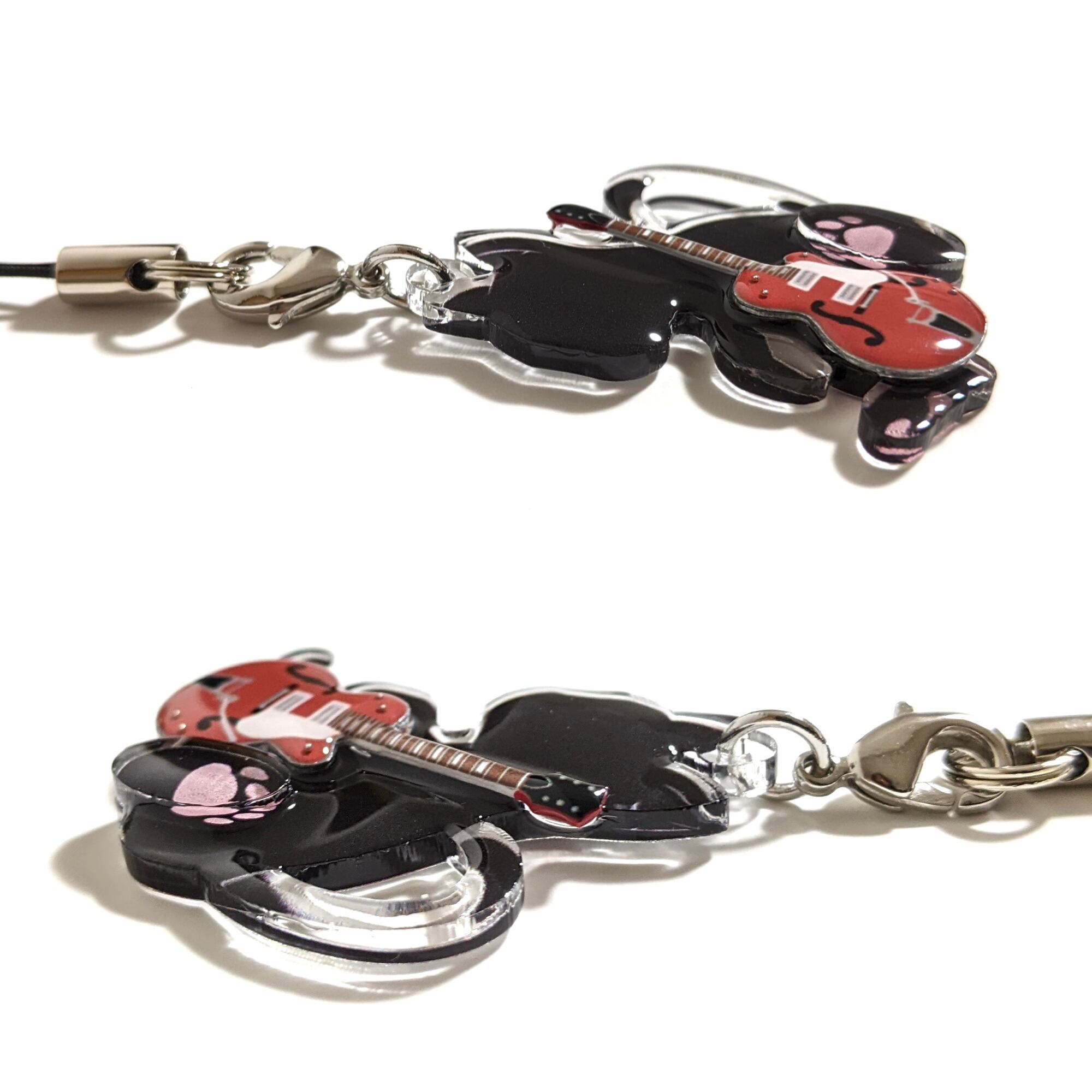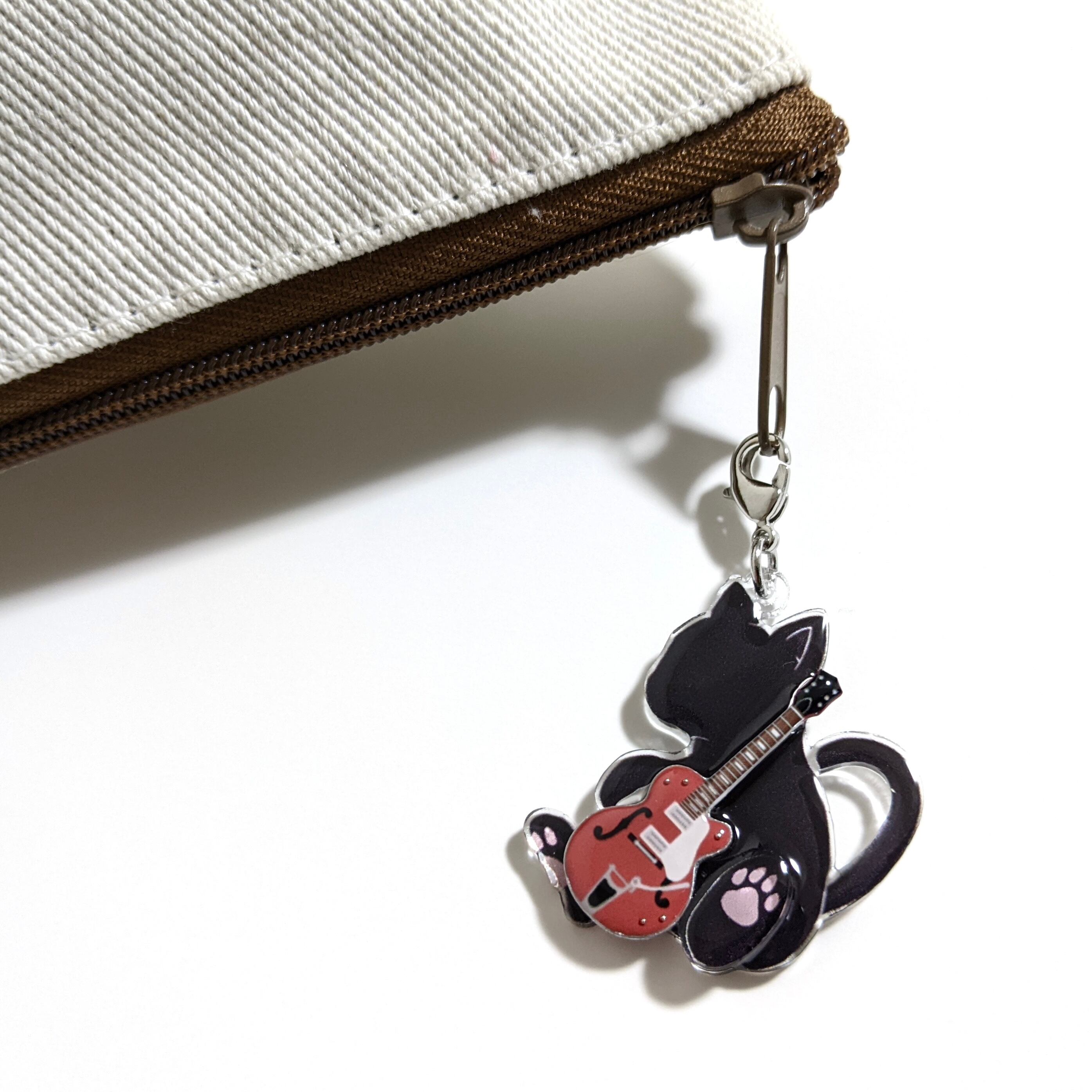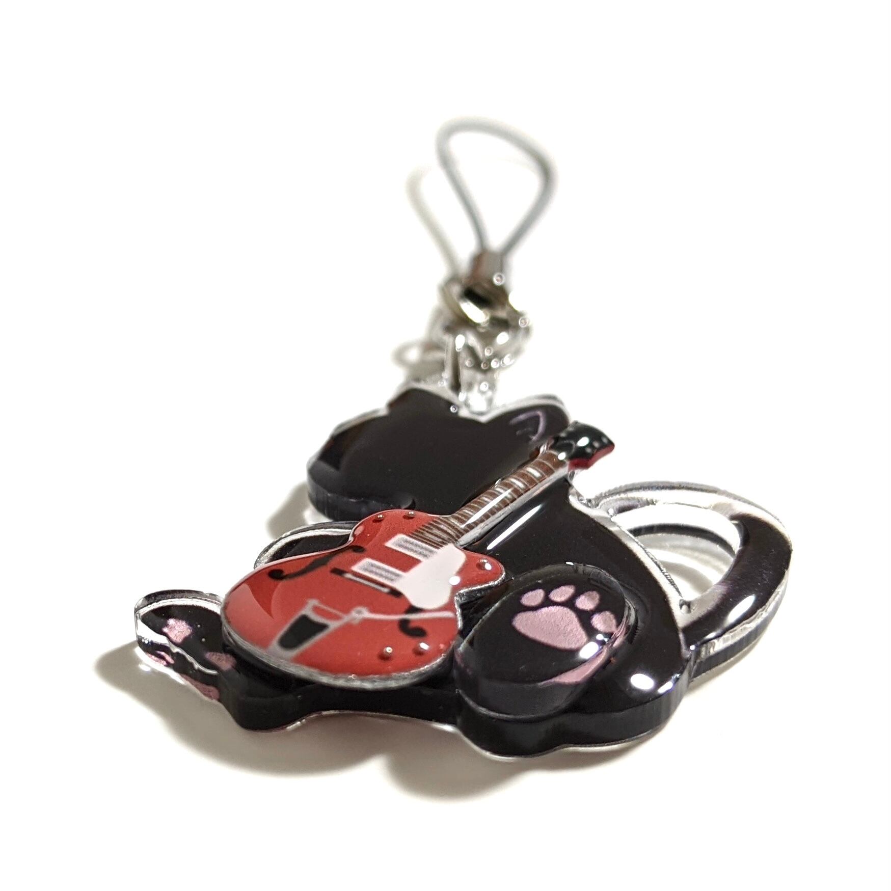 猫がギターを抱えたデザインのアクリルストラップ!