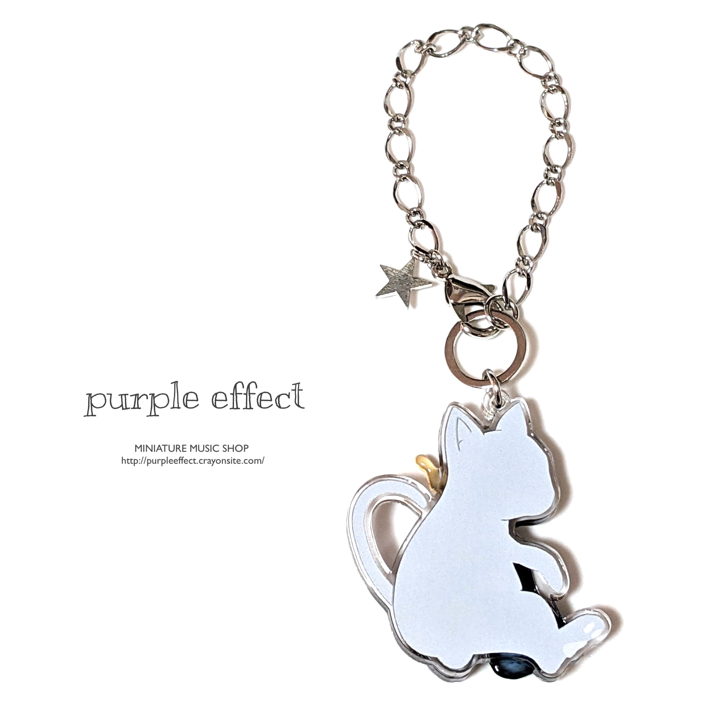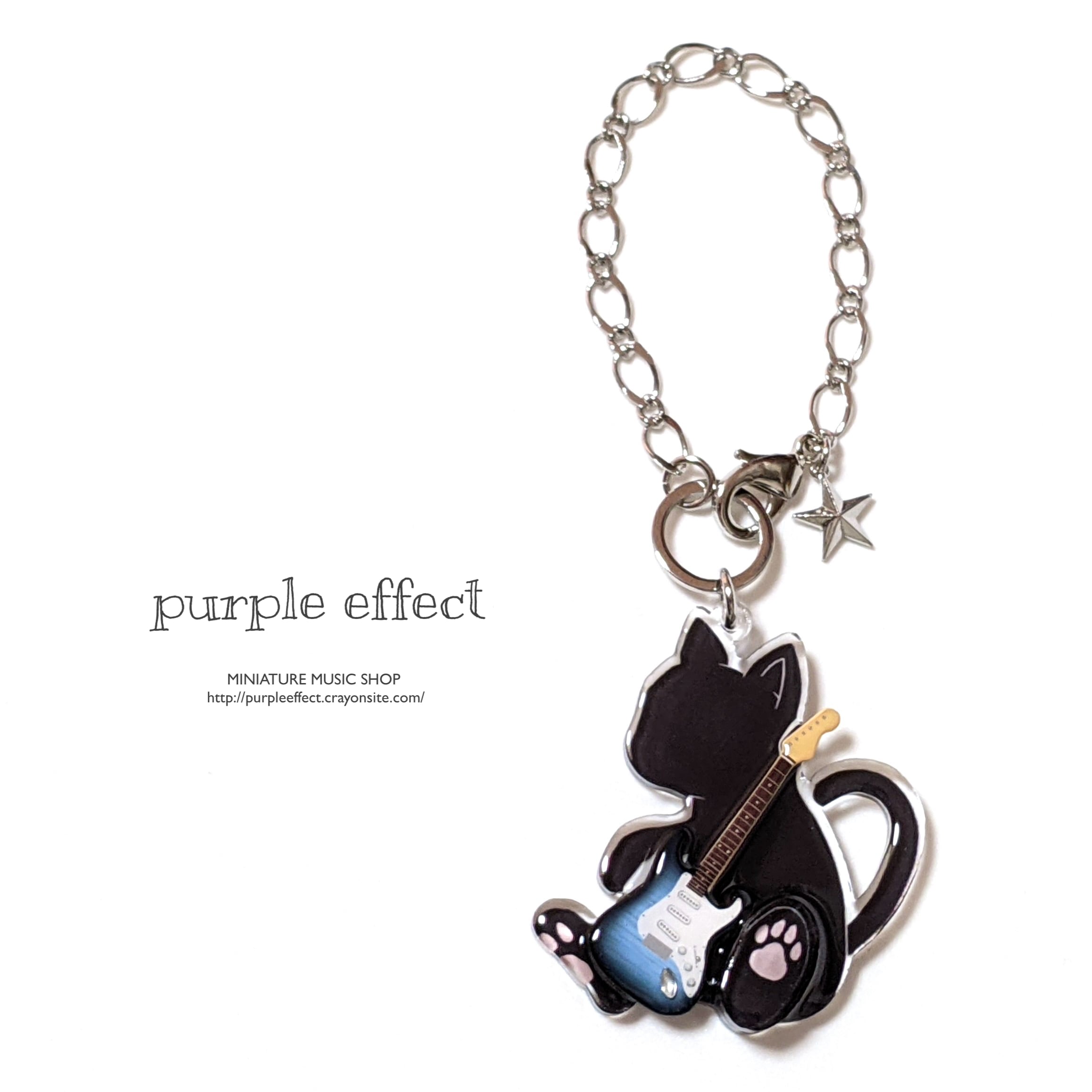 ギター部分と本体の猫チャーム部分を別々に制作しているので、チャームの上でギターの厚みを感じられる、立体的な造りとなっています。