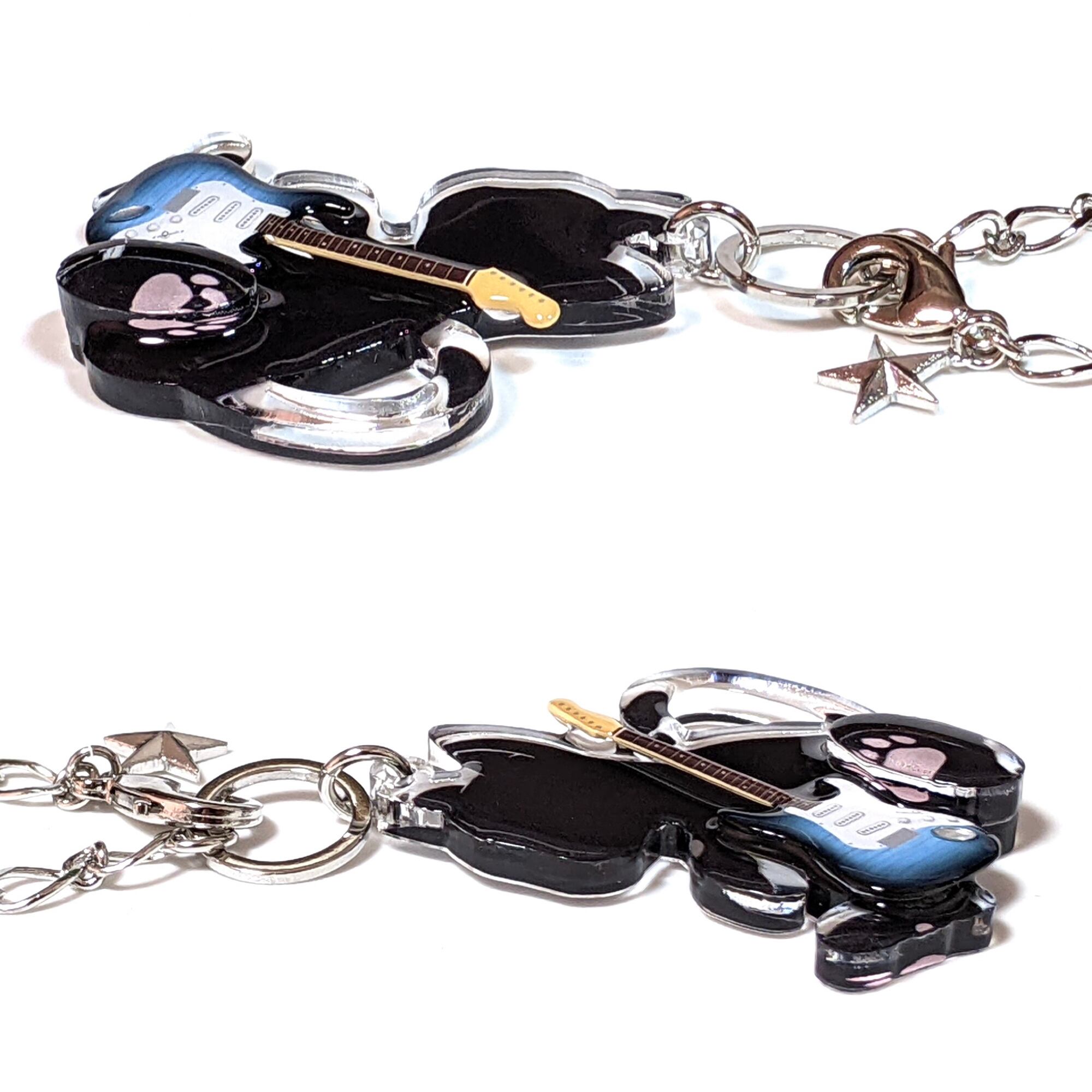 大きめ!アクリルギターにゃんこのバッグチャーム ストラトキャスター