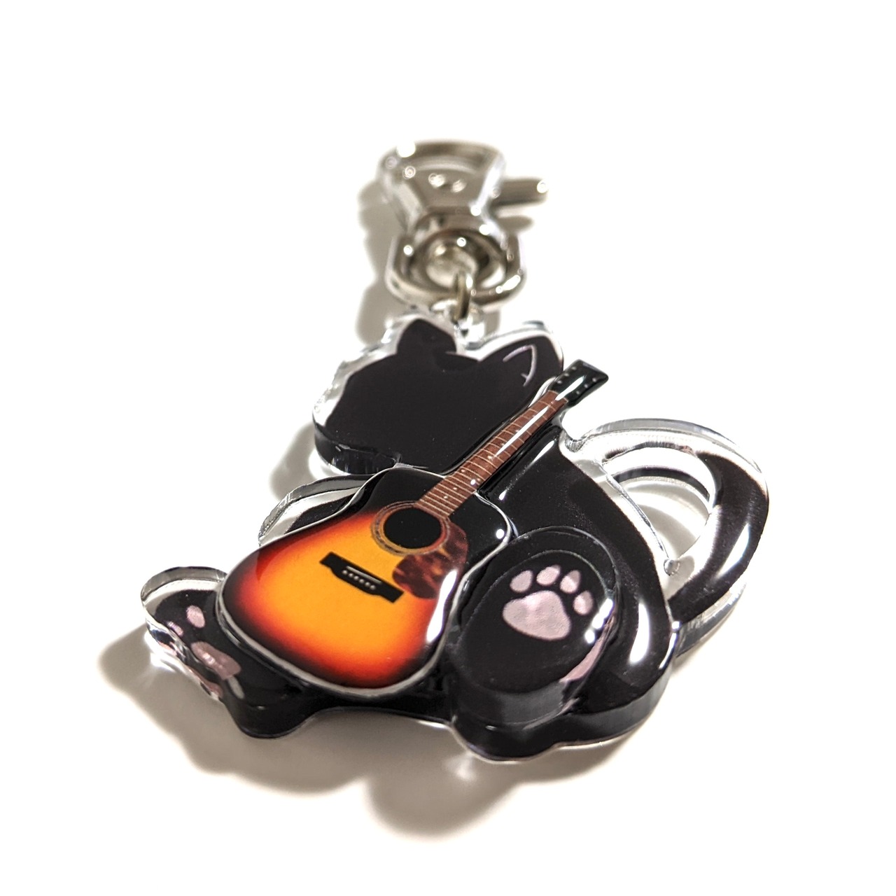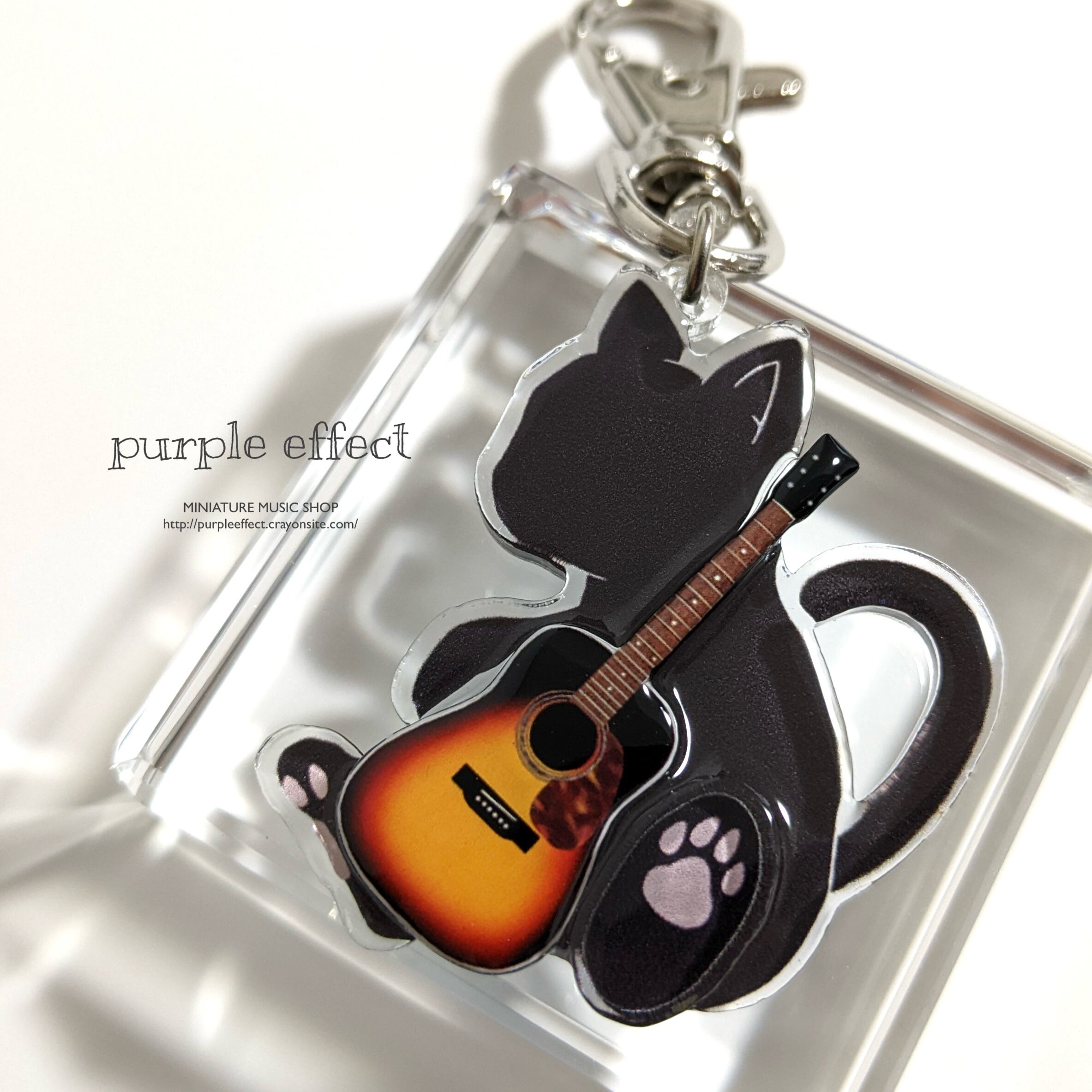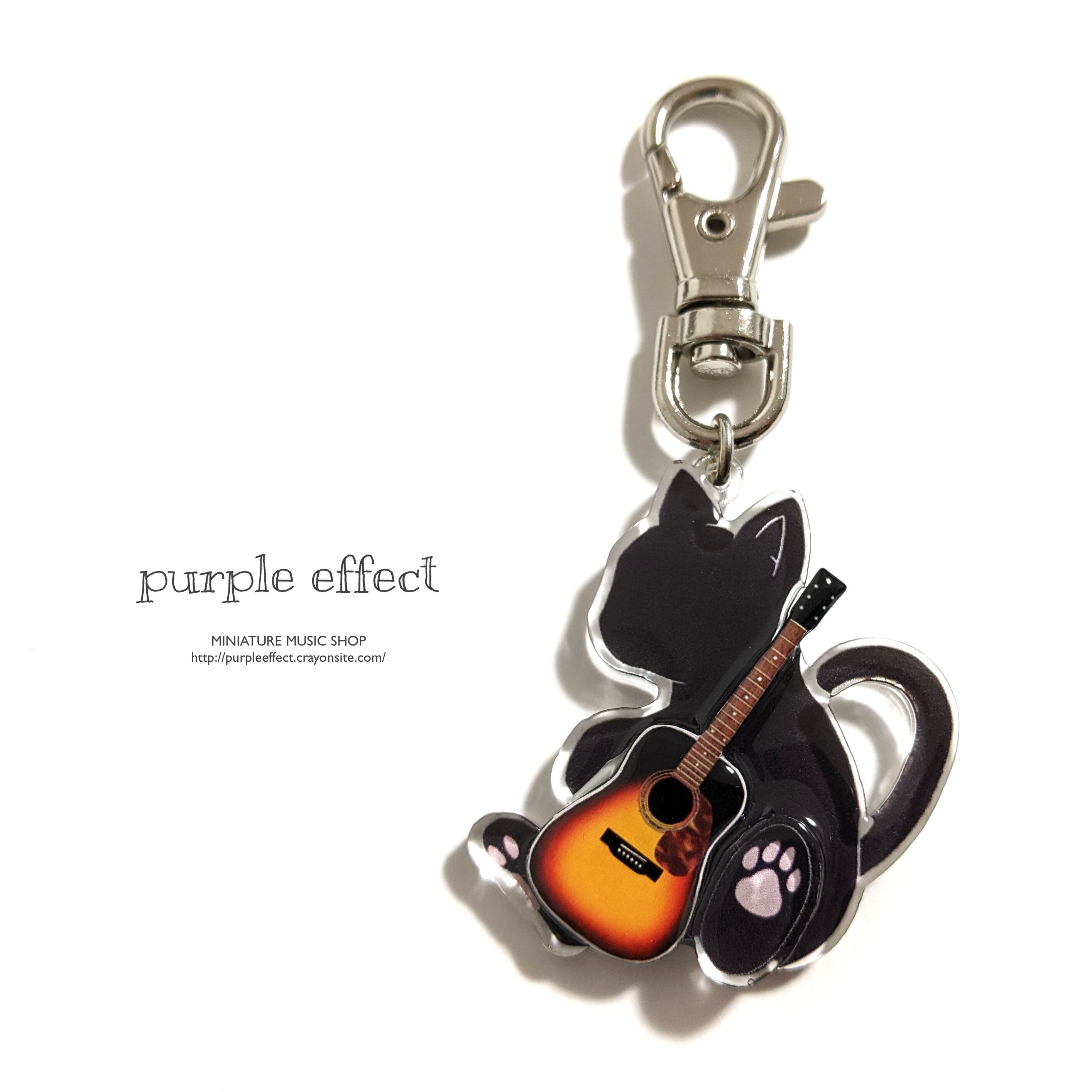 大きめ!アクリルギターにゃんこのキーホルダー アコースティック