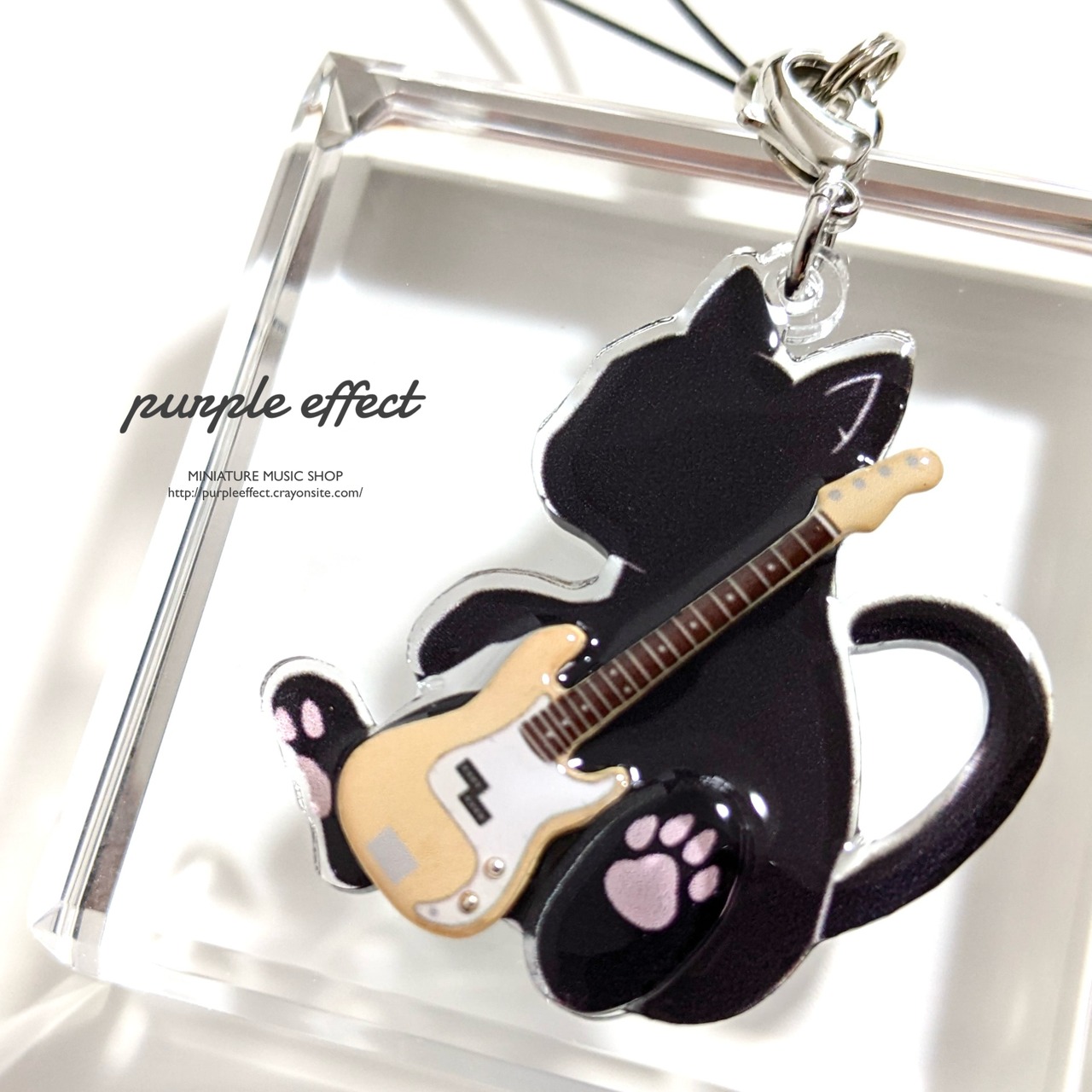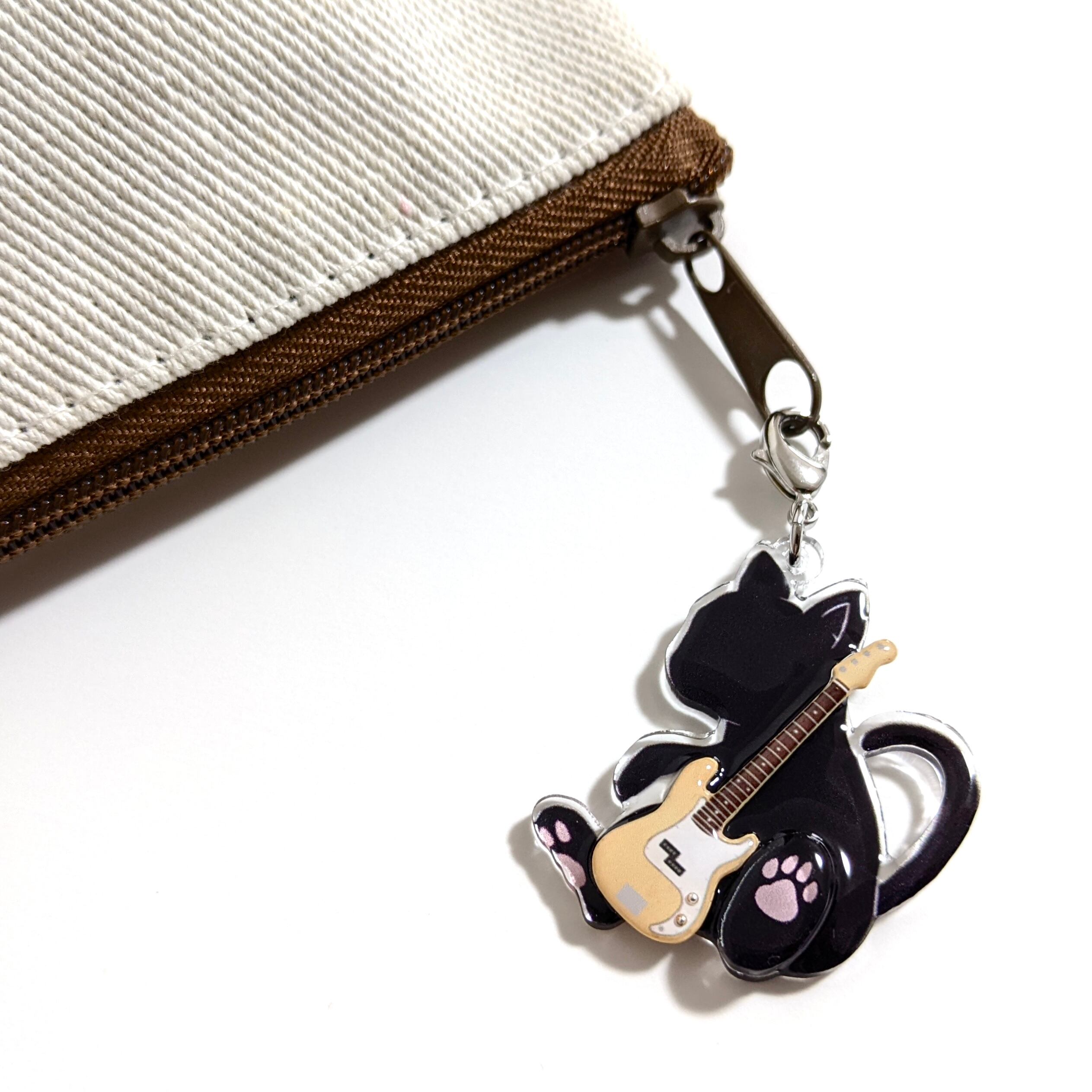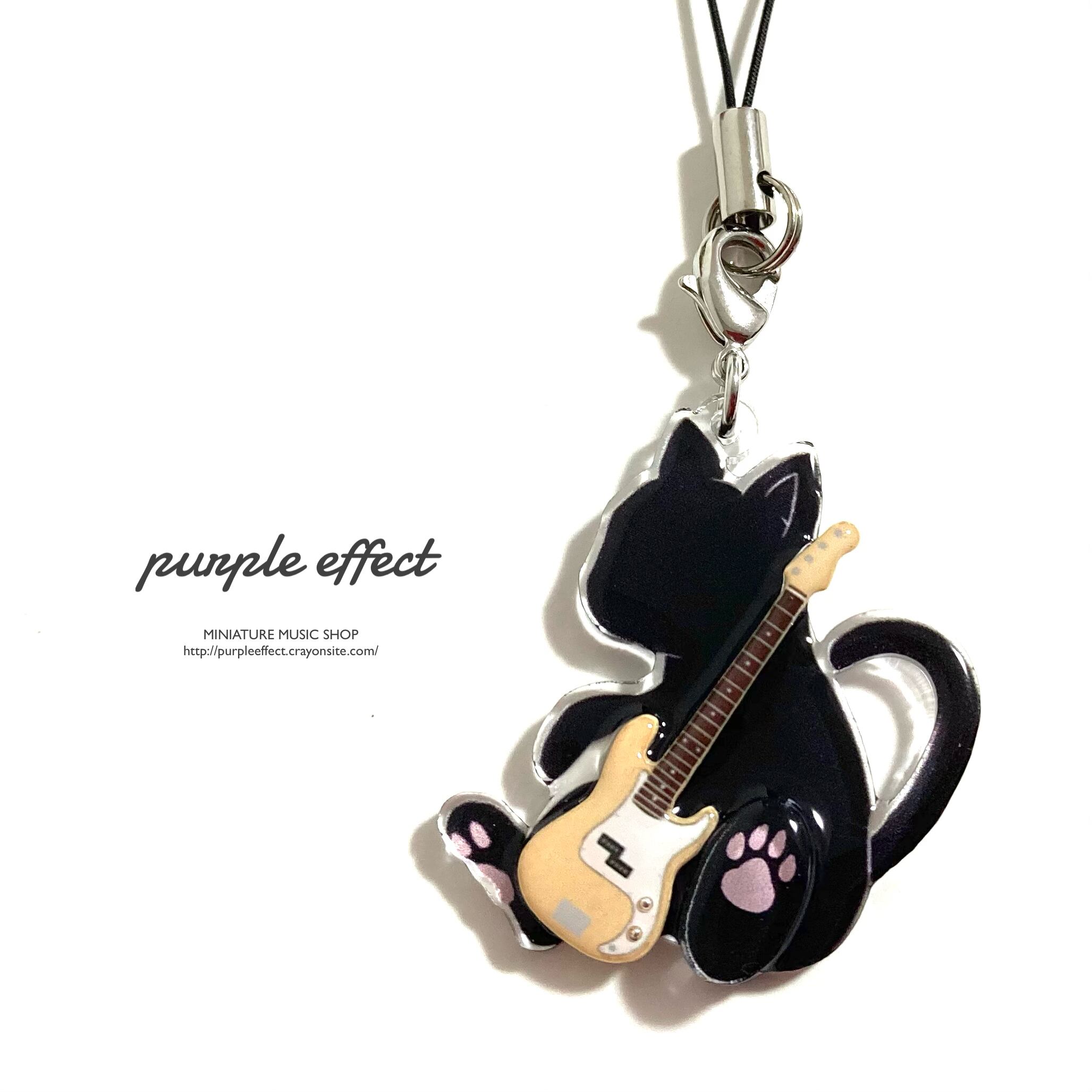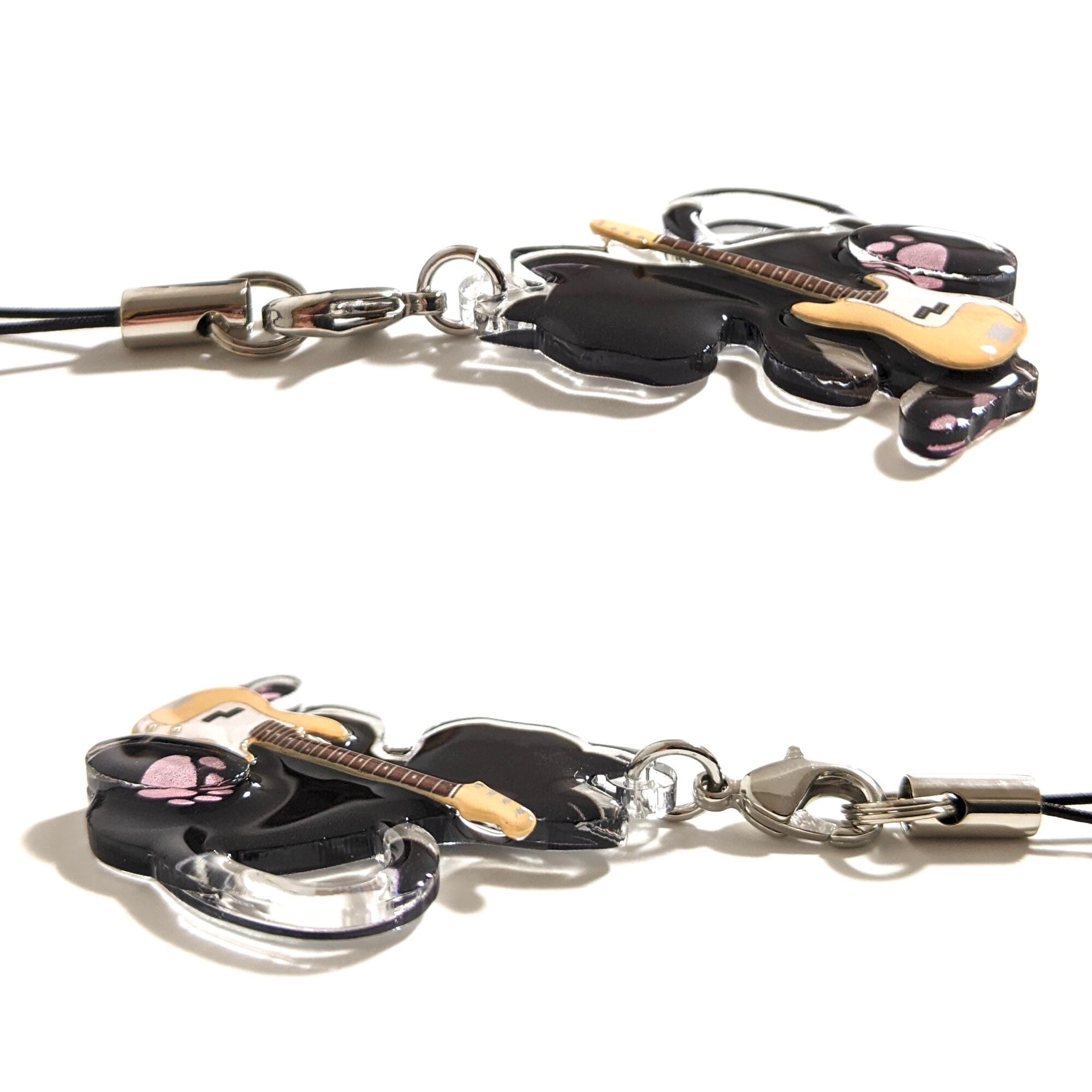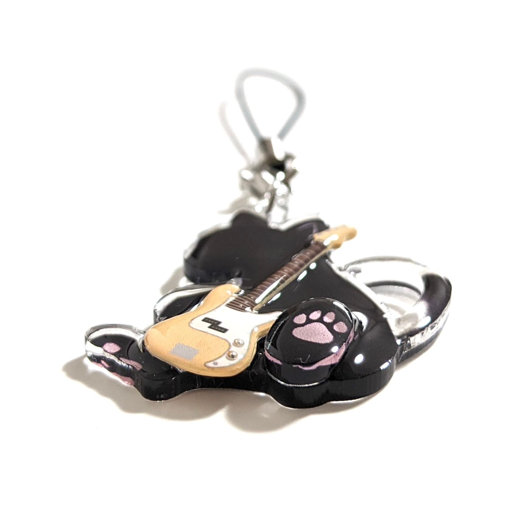 猫がベースを抱えたデザインのアクリルチャーム!