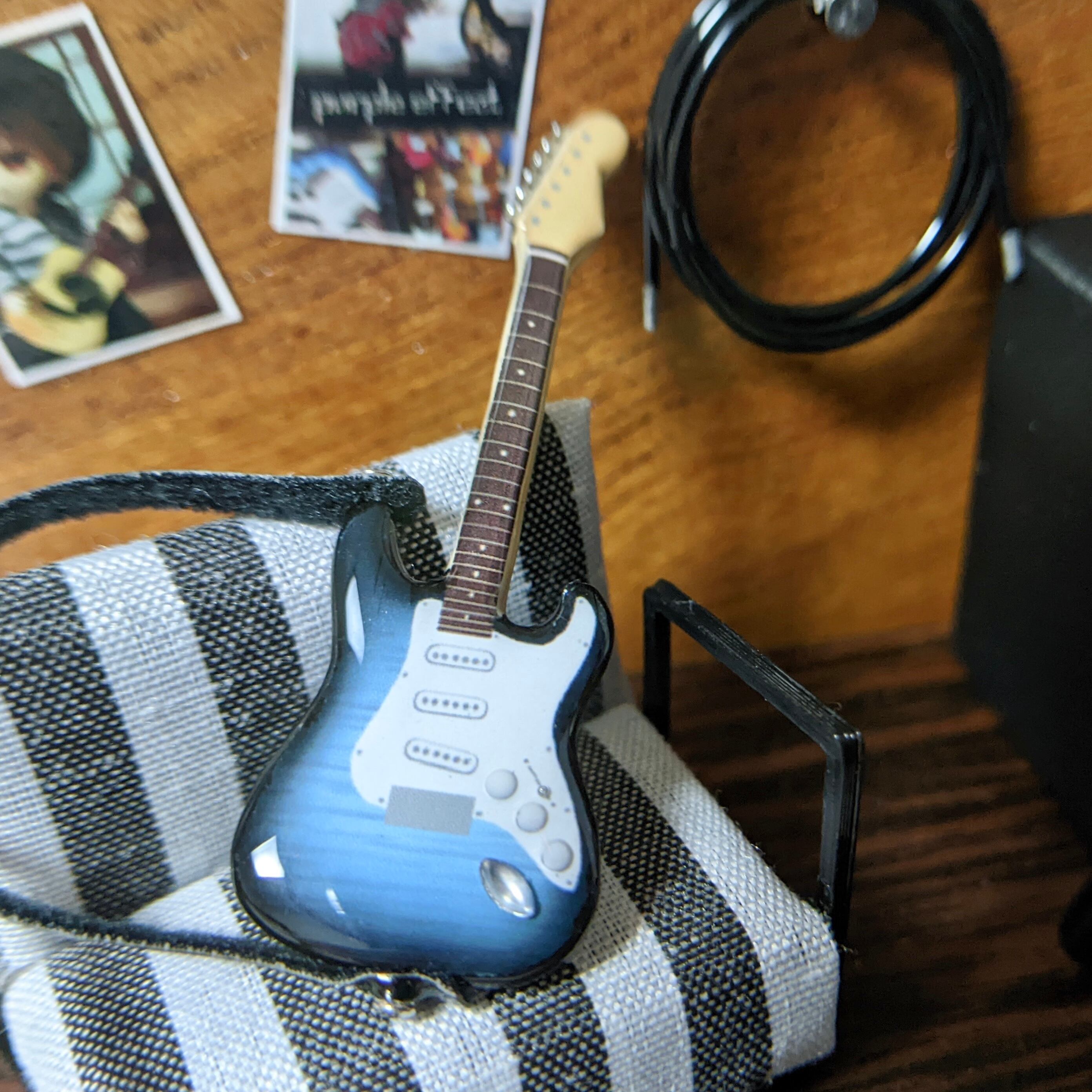 細部にわたってフォルムを再現した、ミニチュアギターのインテリアです。