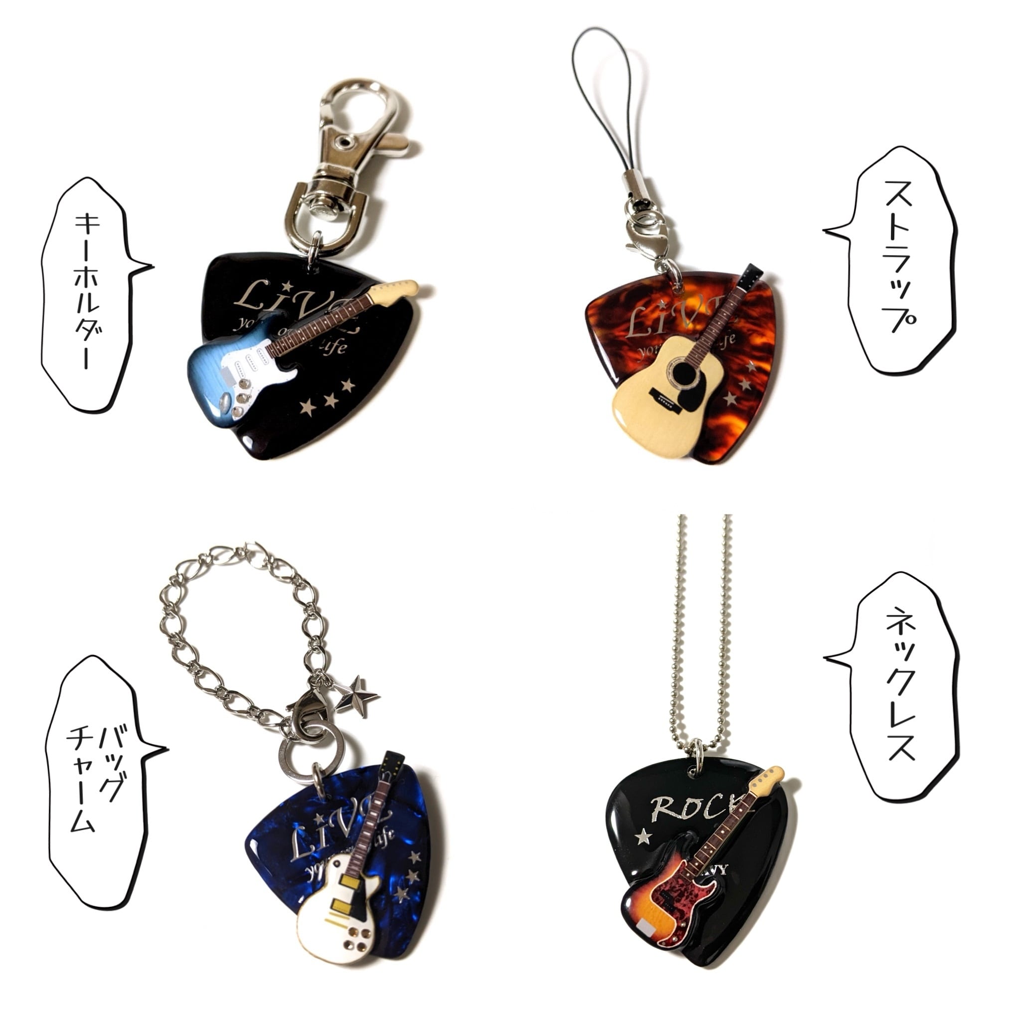 ・本当に弾けるオリジナルデザインピックを使用。